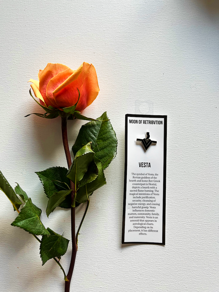 The symbol of Vesta, the Roman goddess of the hearth and home (her Greek counterpart is Hestia), depicts a hearth with a sacred flame burning. The magical intentions of Vesta include purification, security, cleansing of negative energy, and ceasing harmful gossip. Vesta influences domestic matters, community, family, and maternity. Vesta is an asteroid that appears in astrological charts. Depending on its placement, it has different effects.